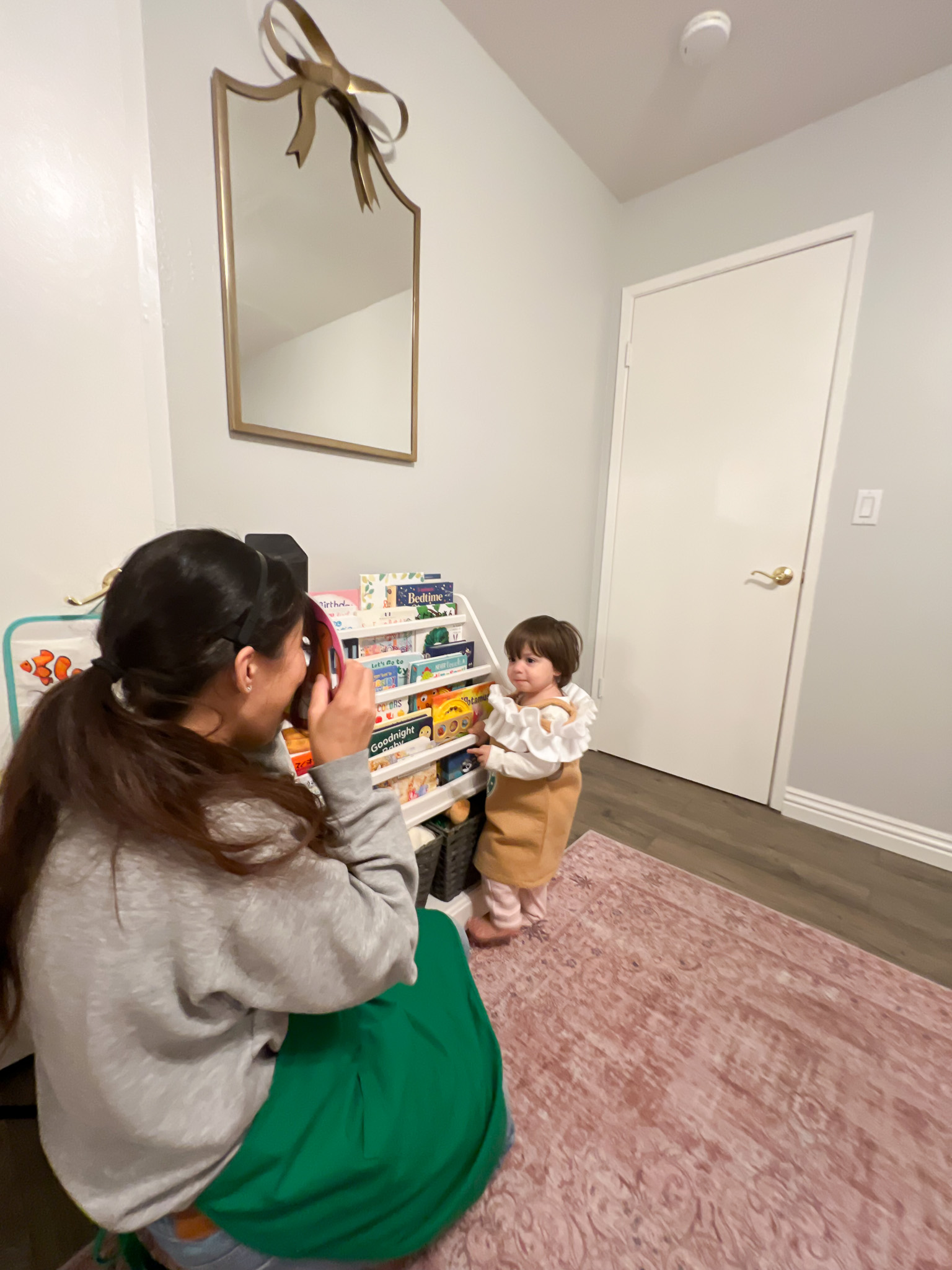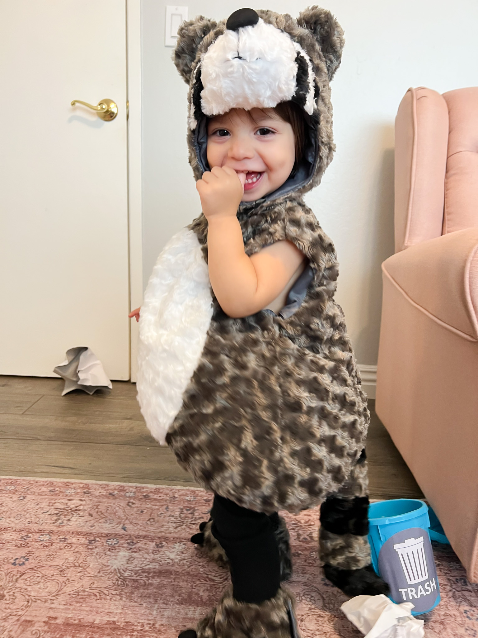 We have a motion-sensor trash can and she LOVES opening it with her tiny hands, plus she’s constantly checking every trash bin in sight. She doesn’t just throw stuff away—she loves taking things out. Nobody warned me that “trash” would be such a thrilling concept for a toddler lol.