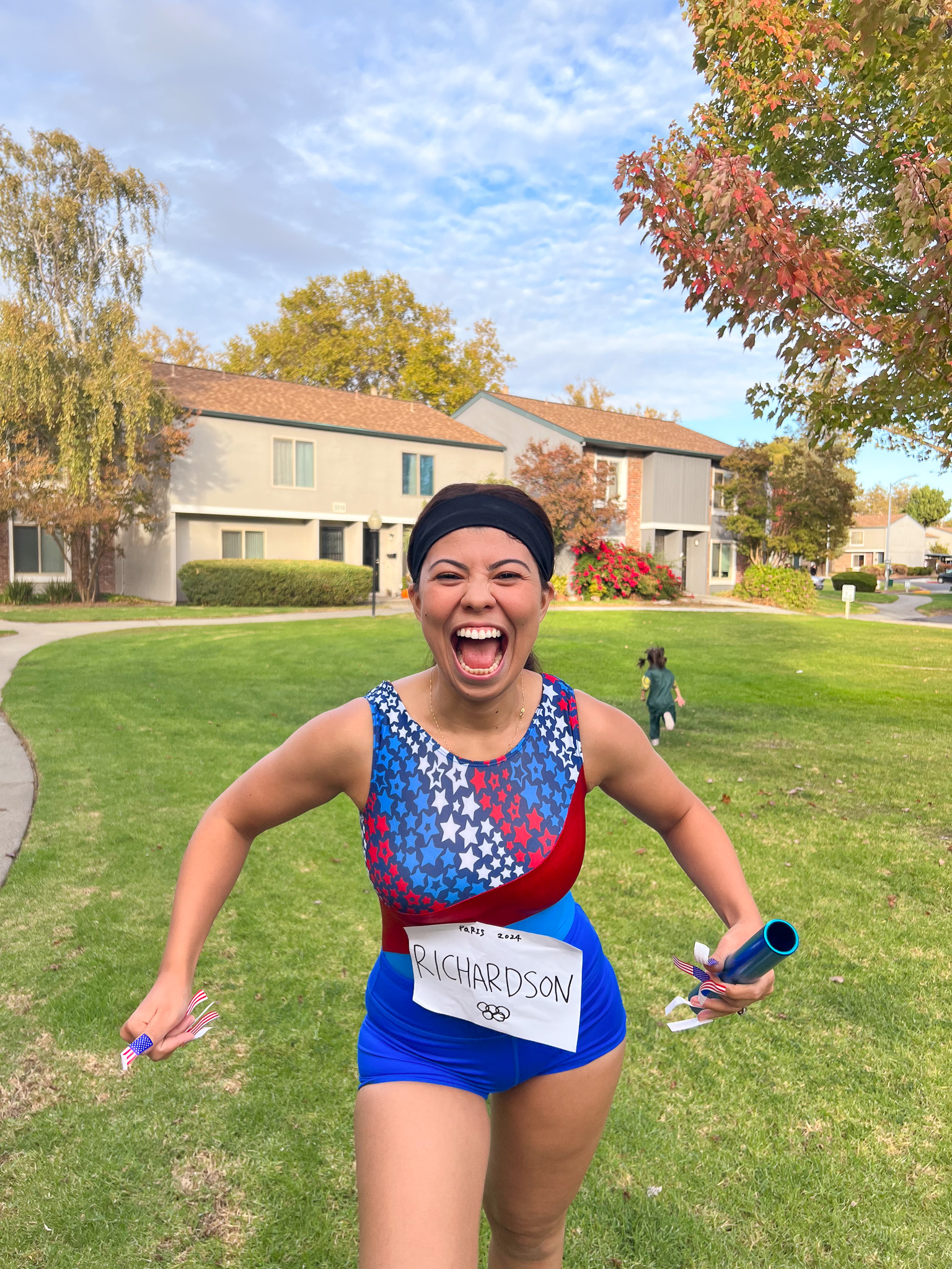 This year, we’re taking the Olympics very seriously. As you know, there were so many viral meme moments from the Olympics, and they became the perfect inspiration for our family Halloween costumes this year! Below are the five athletes we dressed up as—and why I chose each one!