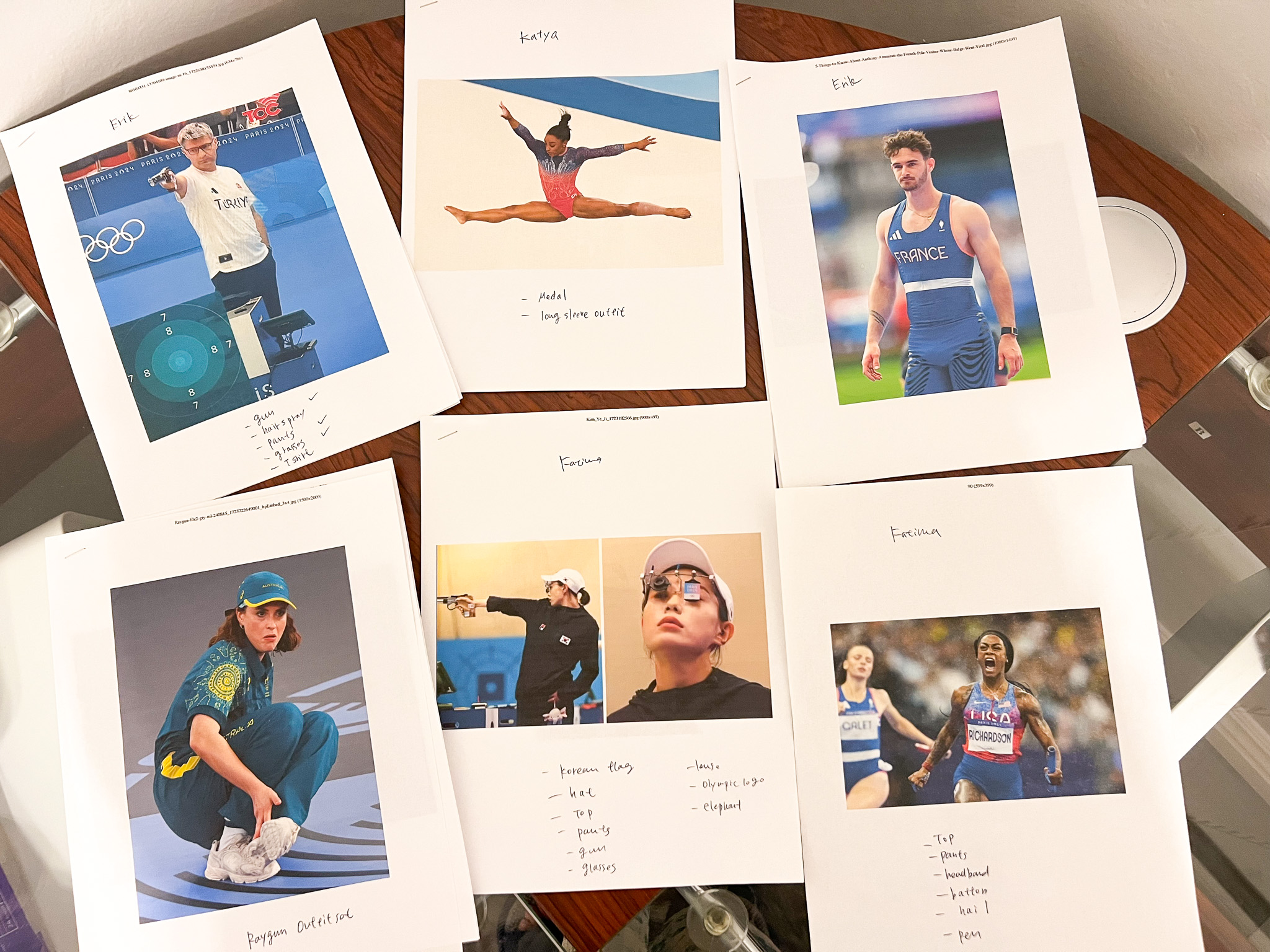 Last but not least, here’s a little behind-the-scenes look at how I planned everything. I printed out a few reference photos of each athlete from the Olympics and made a checklist of what items I needed for each costume. From there, I ordered everything mostly from Amazon and Etsy.