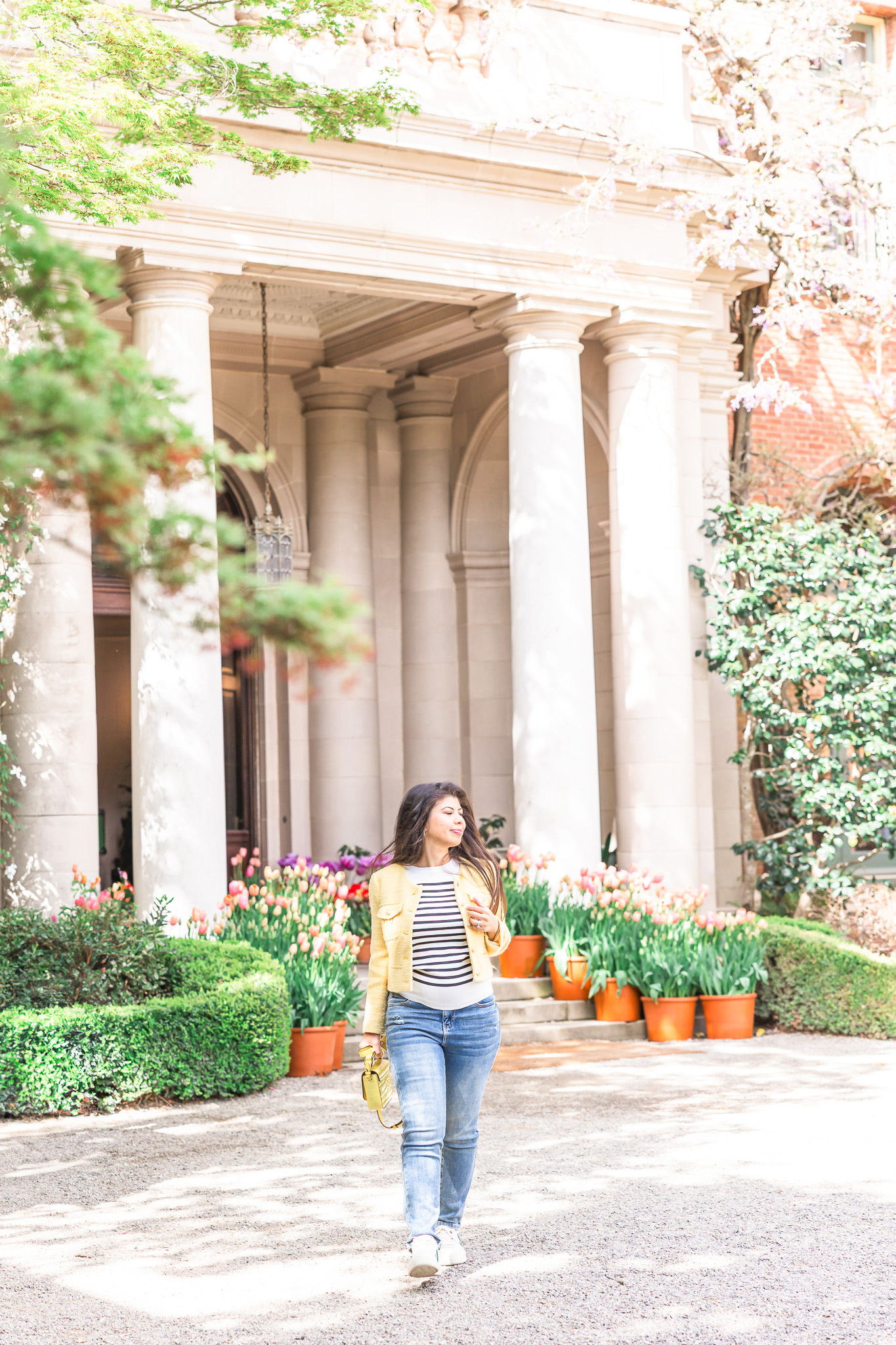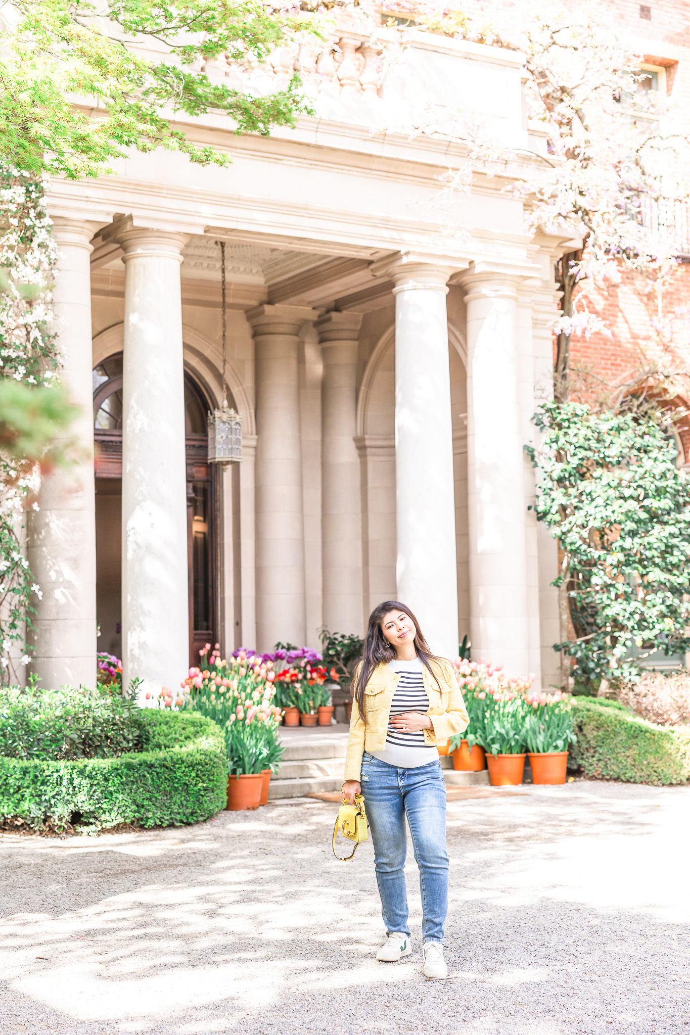 Filoli is located in the Bay Area, and it can get pretty windy and chilly during spring. This blazer is the perfect piece to throw on over a shirt or dress, and the color is just right for the season!