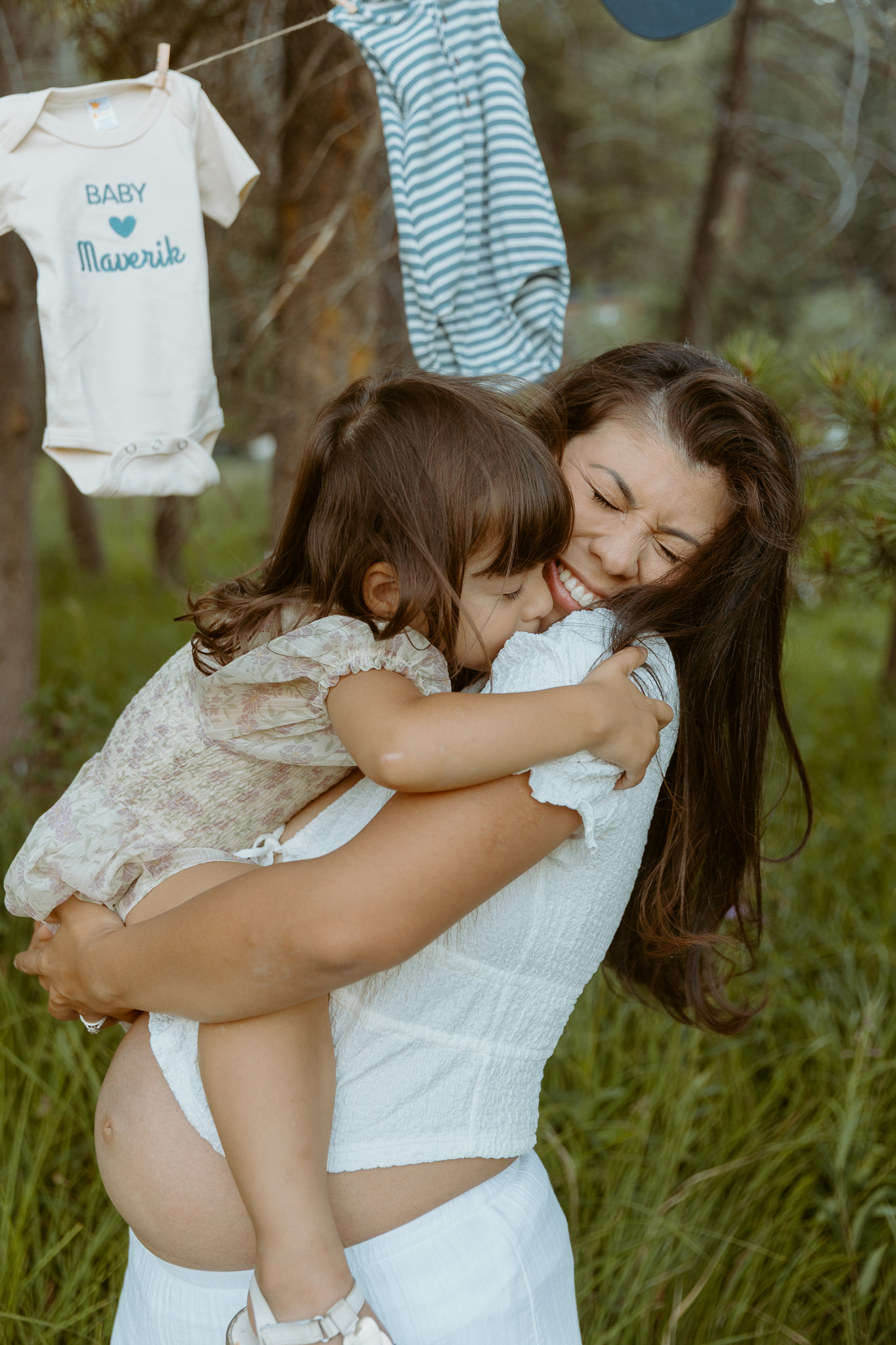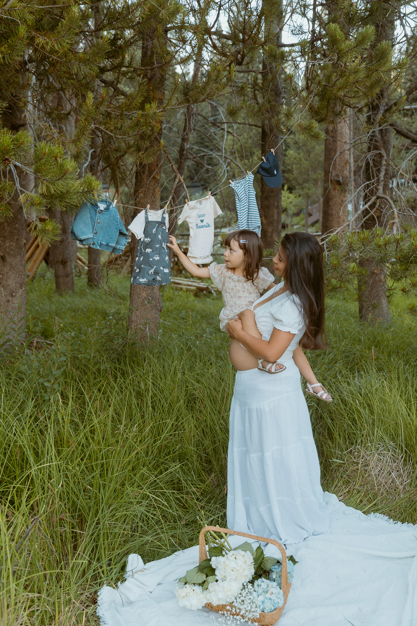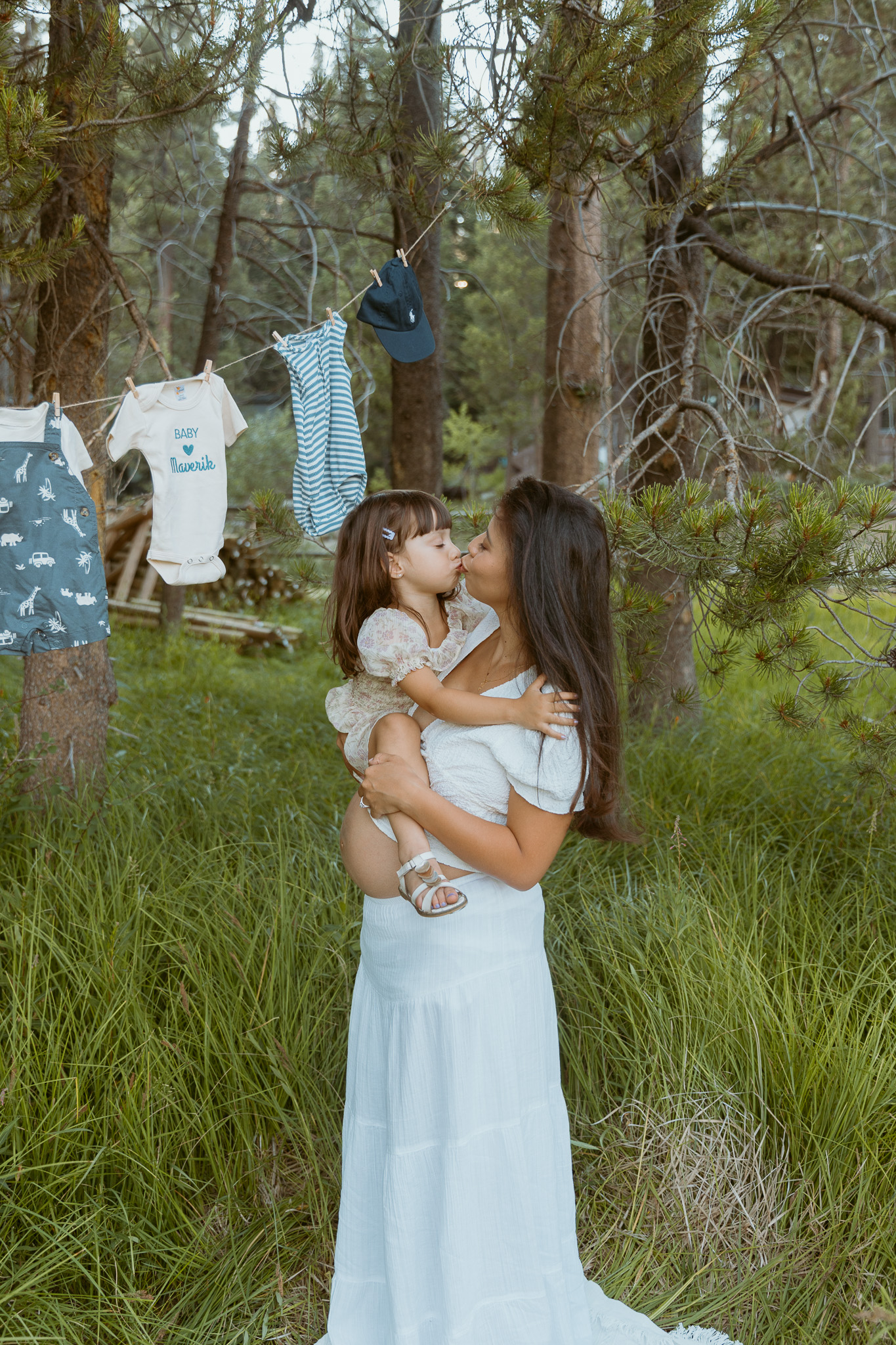 This time, I brought a bunch of props, including clothesline and tiny baby clothes. Hanging up those little outfits made everything feel so real—that I’d be meeting my baby boy so soon. On the day of the shoot, I was at the very end of 35 weeks pregnant (35 weeks and 6 days). Since I delivered Katya at 37 weeks and 1 day, the reality that I could meet my son at any moment felt so surreal. The last time I did a maternity shoot with Annie, Katya arrived just four days later, so it brought back a lot of memories.