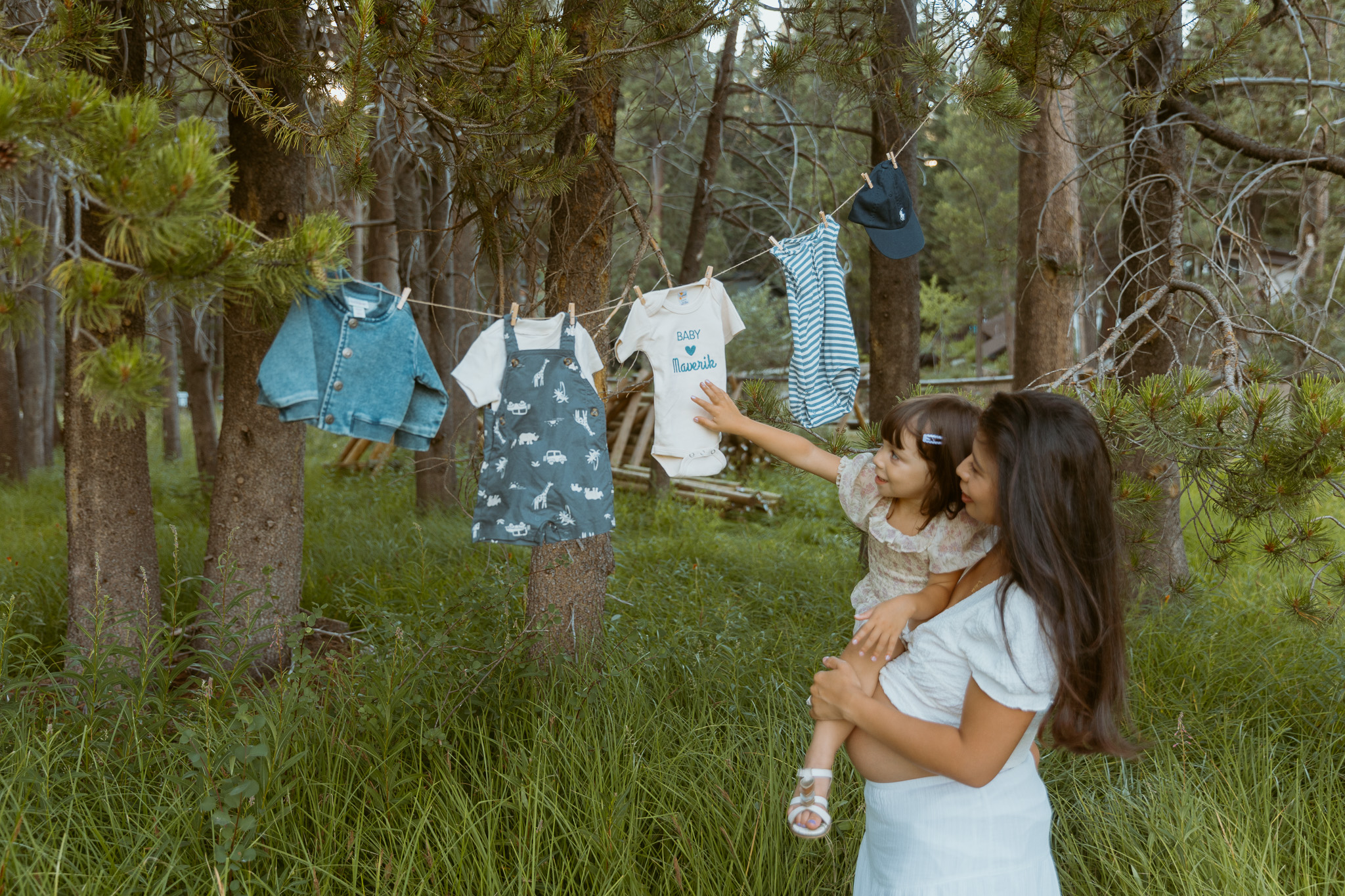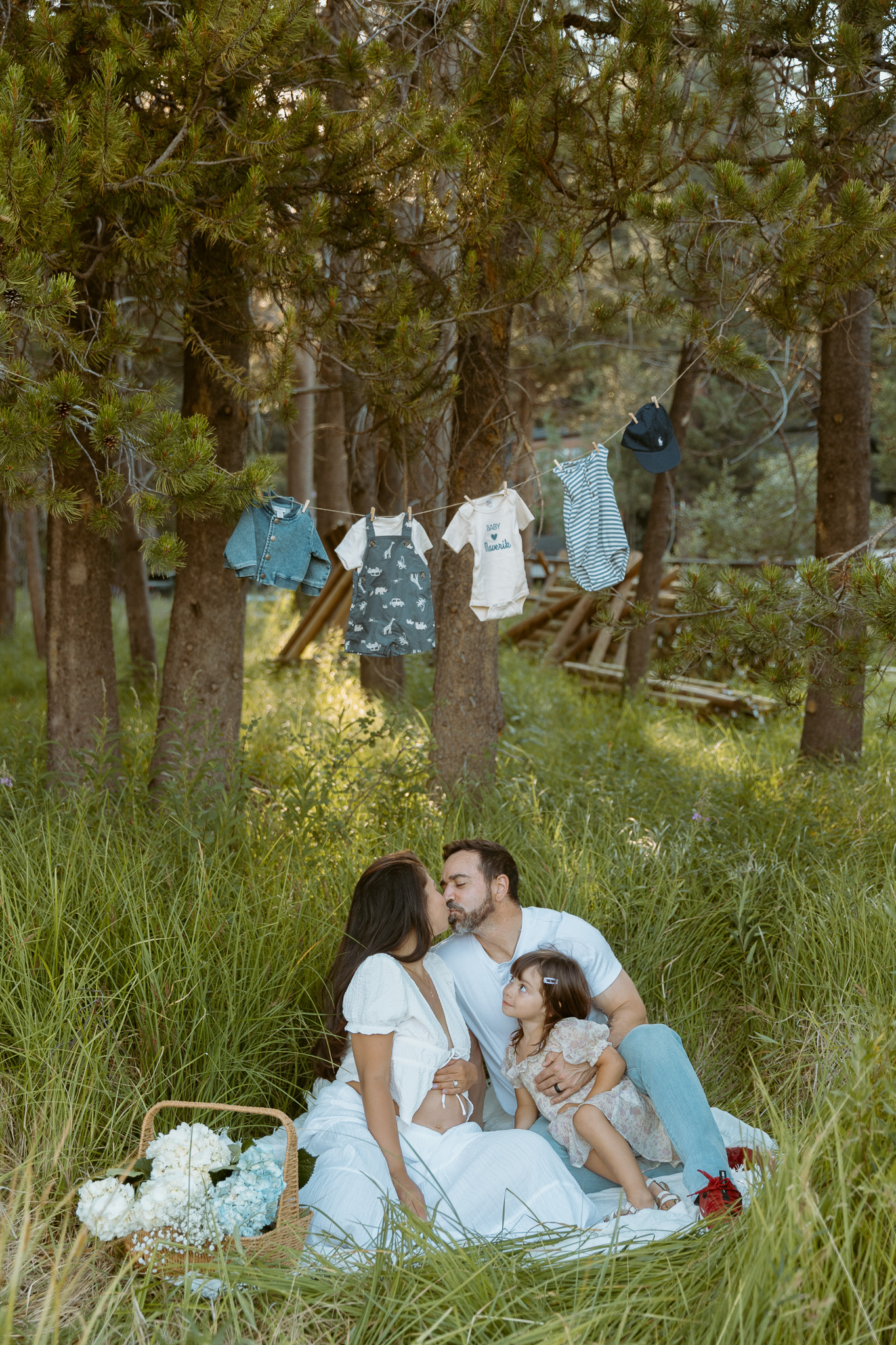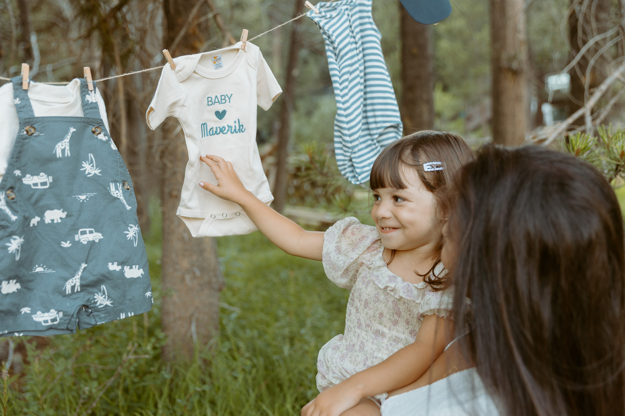 This time, I brought a bunch of props, including clothesline and tiny baby clothes. Hanging up those little outfits made everything feel so real—that I’d be meeting my baby boy so soon. On the day of the shoot, I was at the very end of 35 weeks pregnant (35 weeks and 6 days). Since I delivered Katya at 37 weeks and 1 day, the reality that I could meet my son at any moment felt so surreal. The last time I did a maternity shoot with Annie, Katya arrived just four days later, so it brought back a lot of memories.