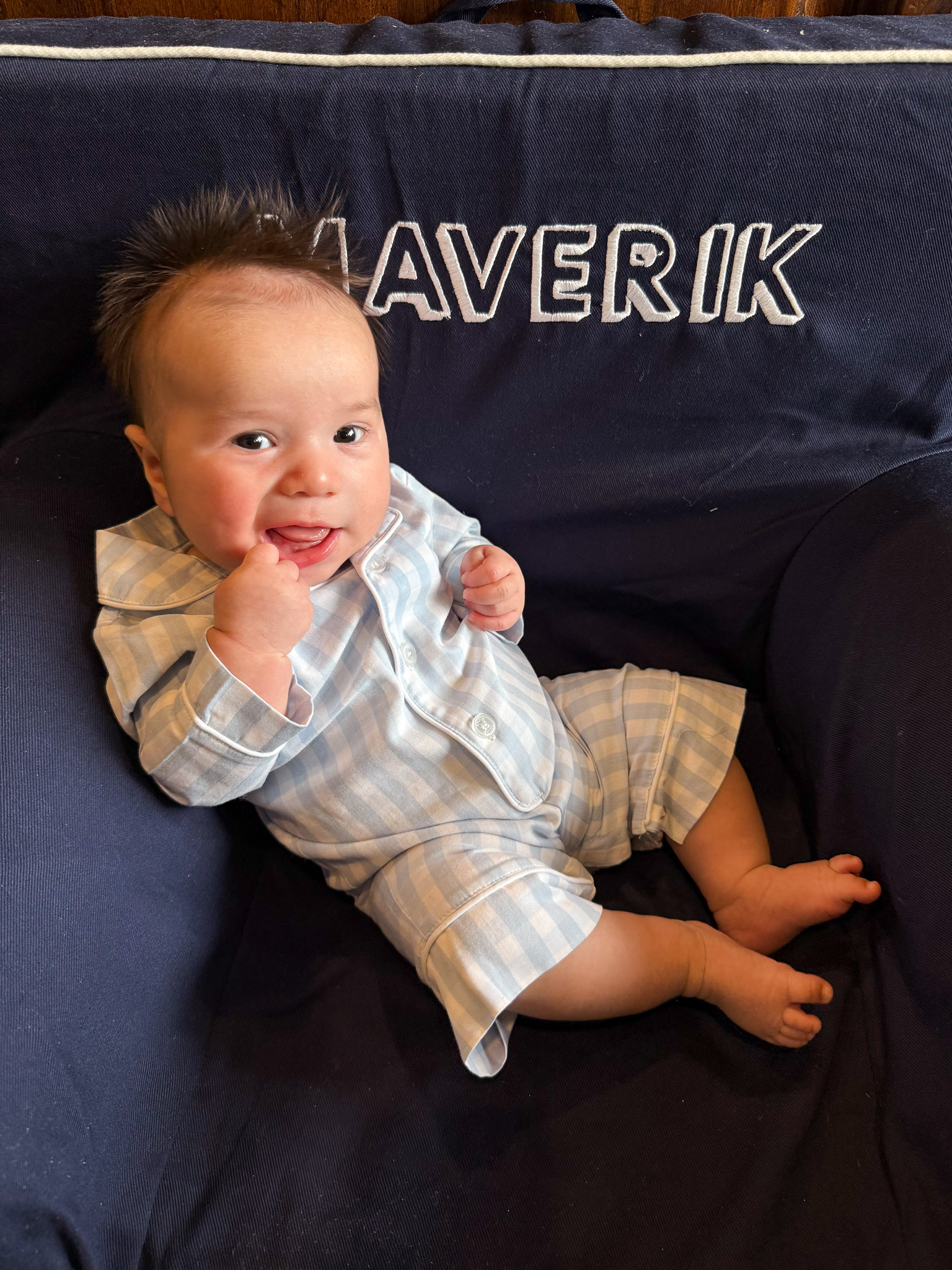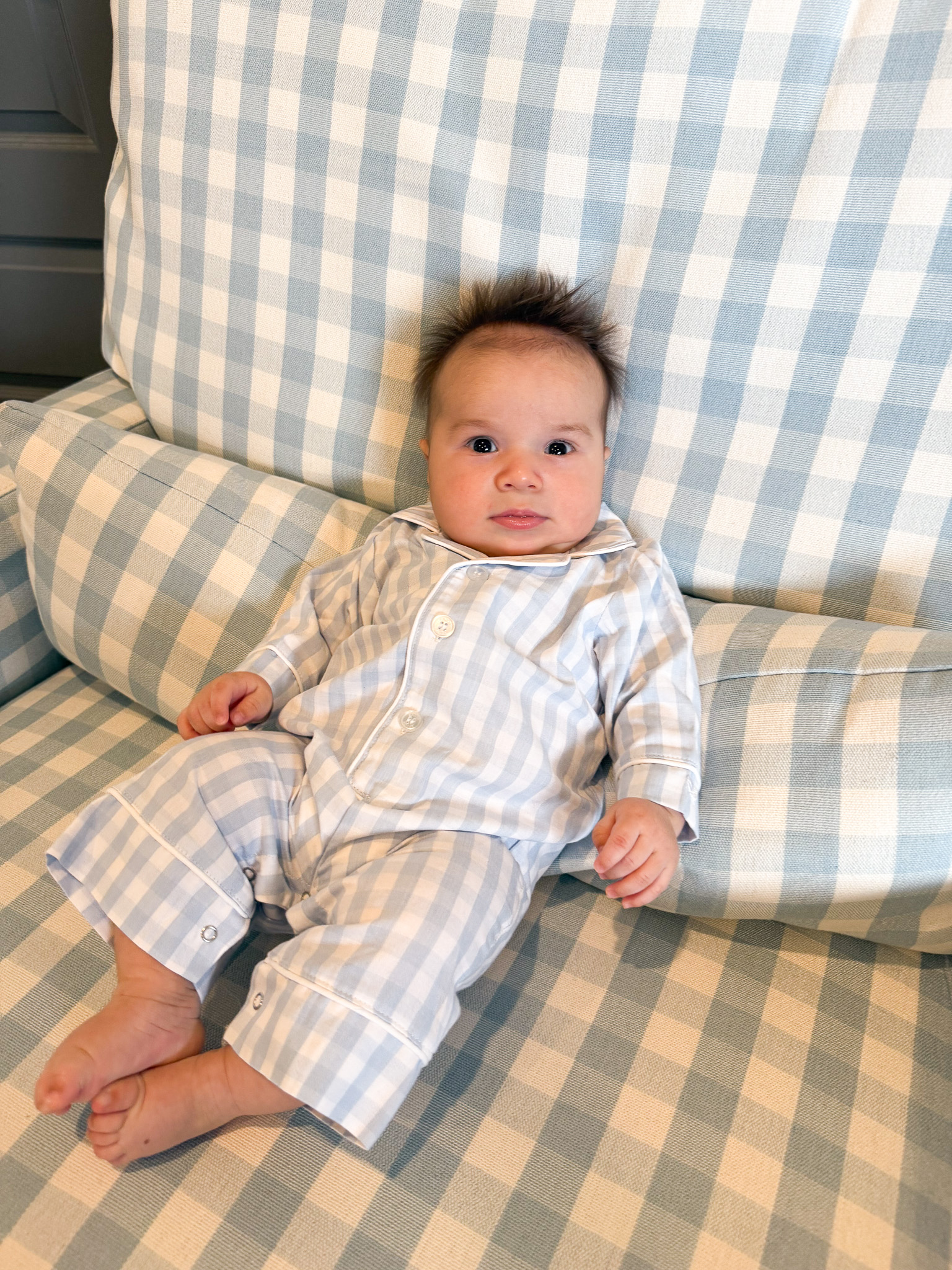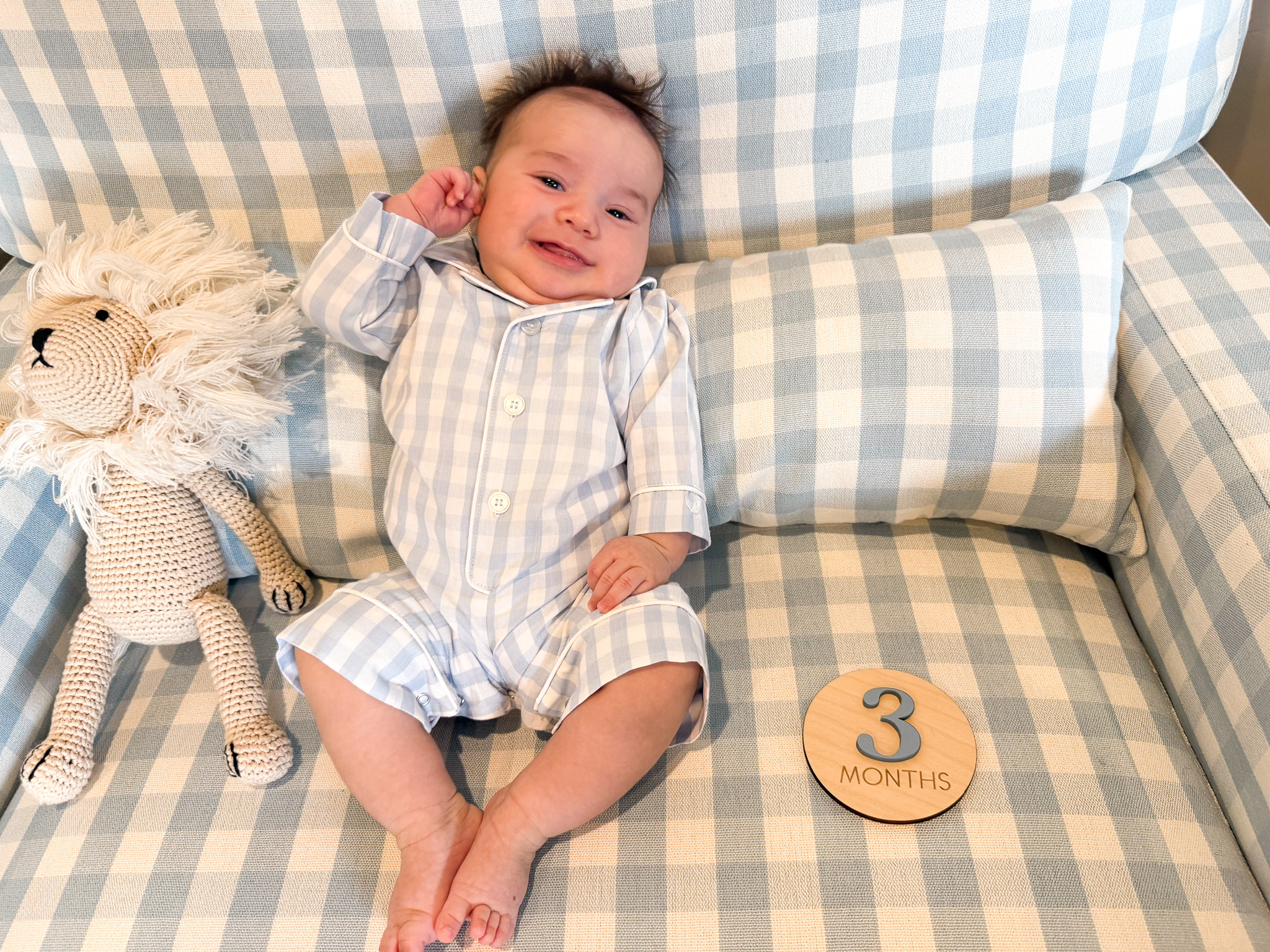 P.S. Maverik’s outfit is from Petite Plume. I first learned about this brand from Prince George’s bathrobe. I originally ordered the PJs for Maverik thinking of using them for his birth announcement—they were too big at the time, but now they fit him perfectly. I also got a matching bathrobe! The design, fabric, and practicality are all amazing and totally worth the price. I can’t wait to explore the brand more! (His PJs — exact ones here)