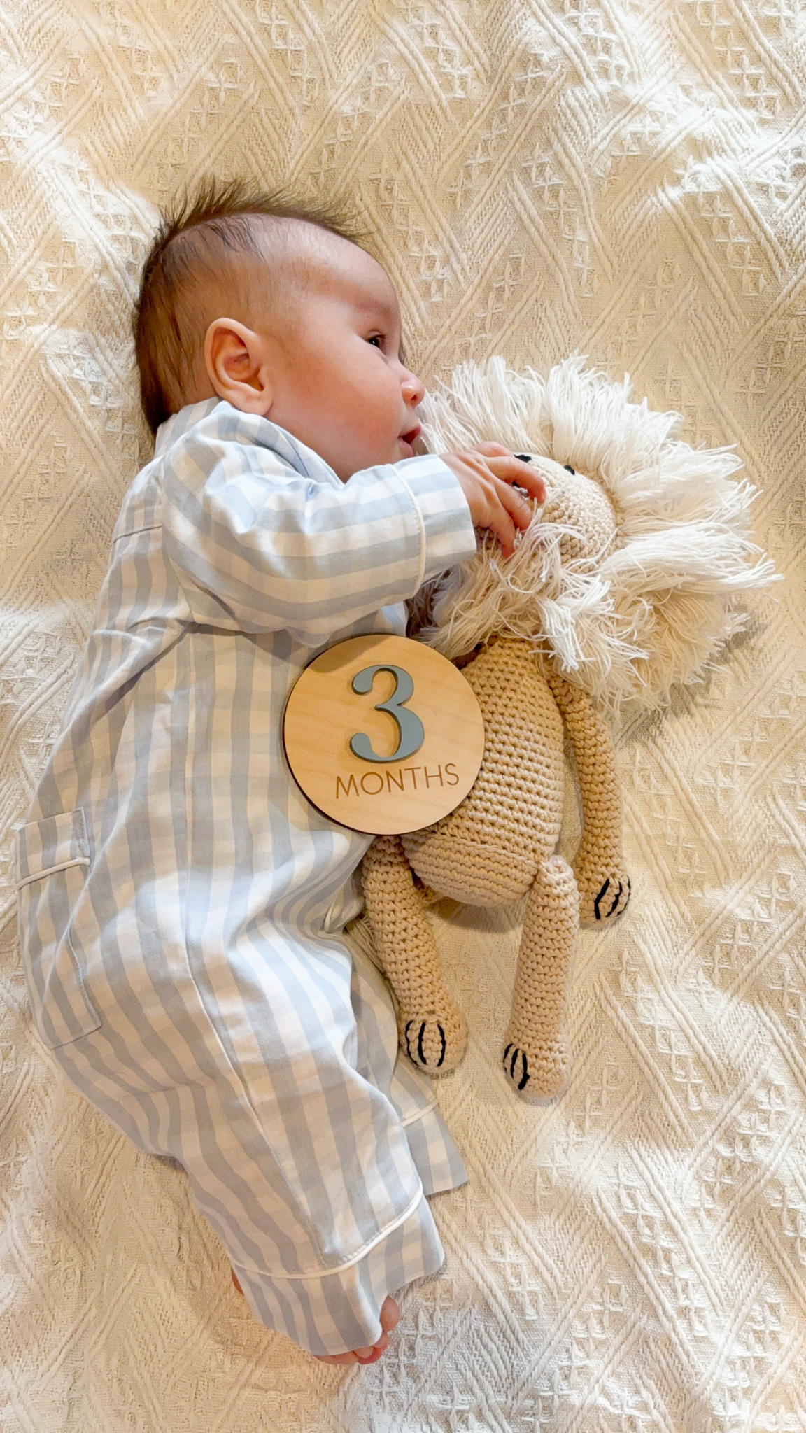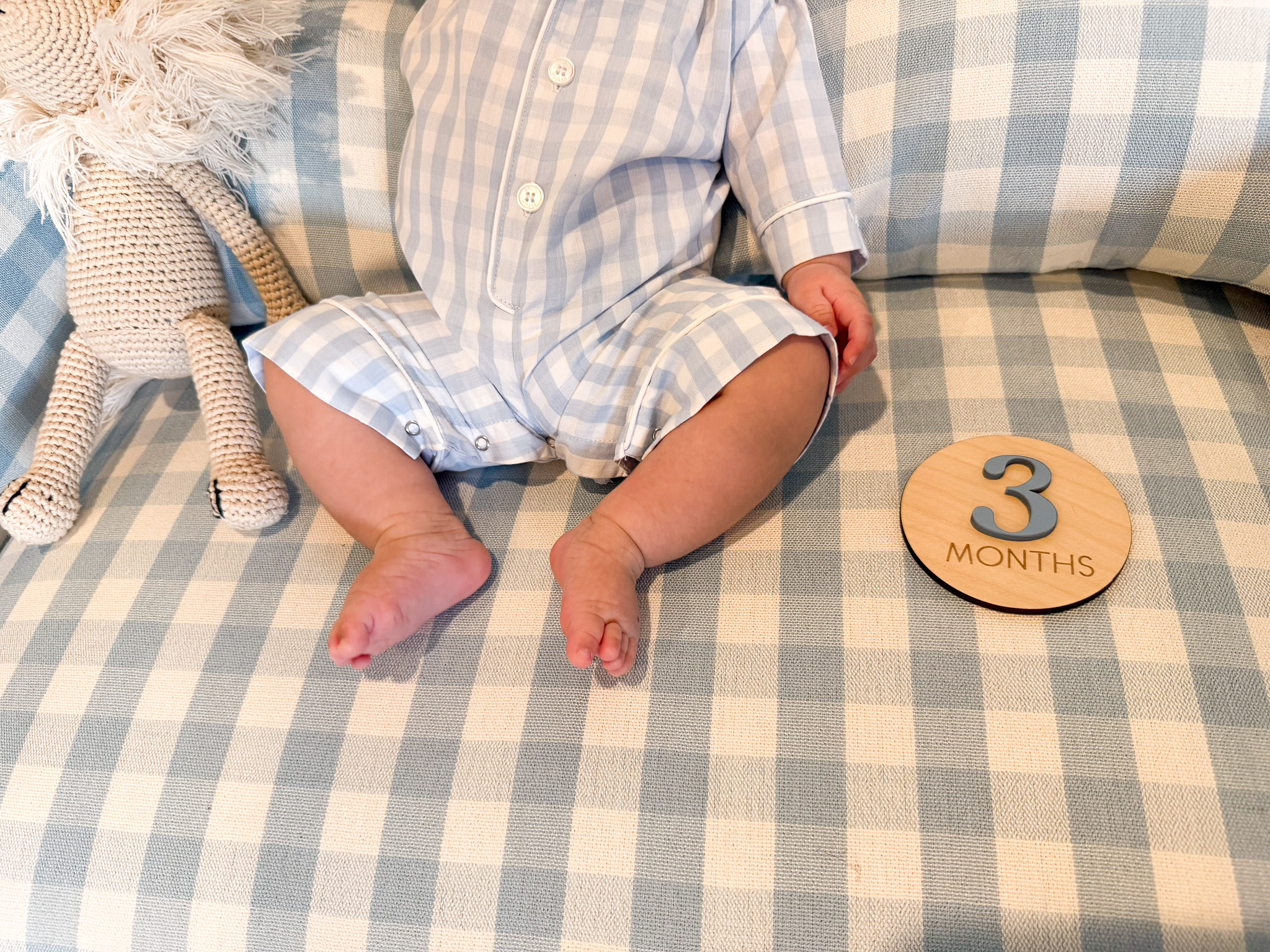 How is he already 3 months old?! Whaaaaat?! I don’t see wrinkles on his legs and arms anymore—those tiny wrinkles are all filled in with fat now, and he has the cutest squishy rolls! Aren’t baby rolls the most precious thing on this earth? I seriously can’t get enough of them—they all look so delicious!! He’s been getting lots of hugs, cuddles, and kisses from me lately.