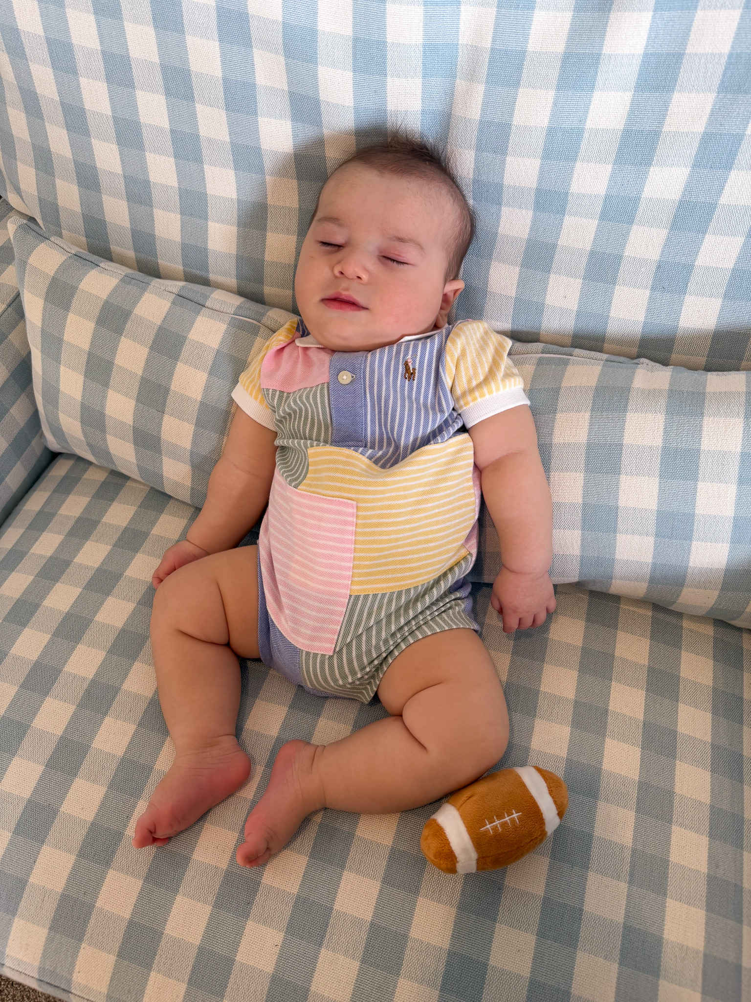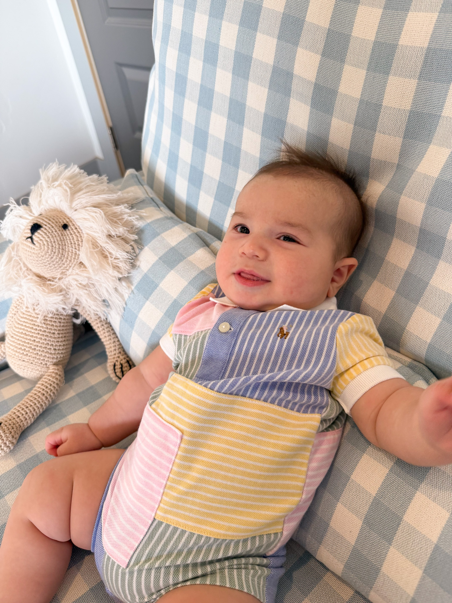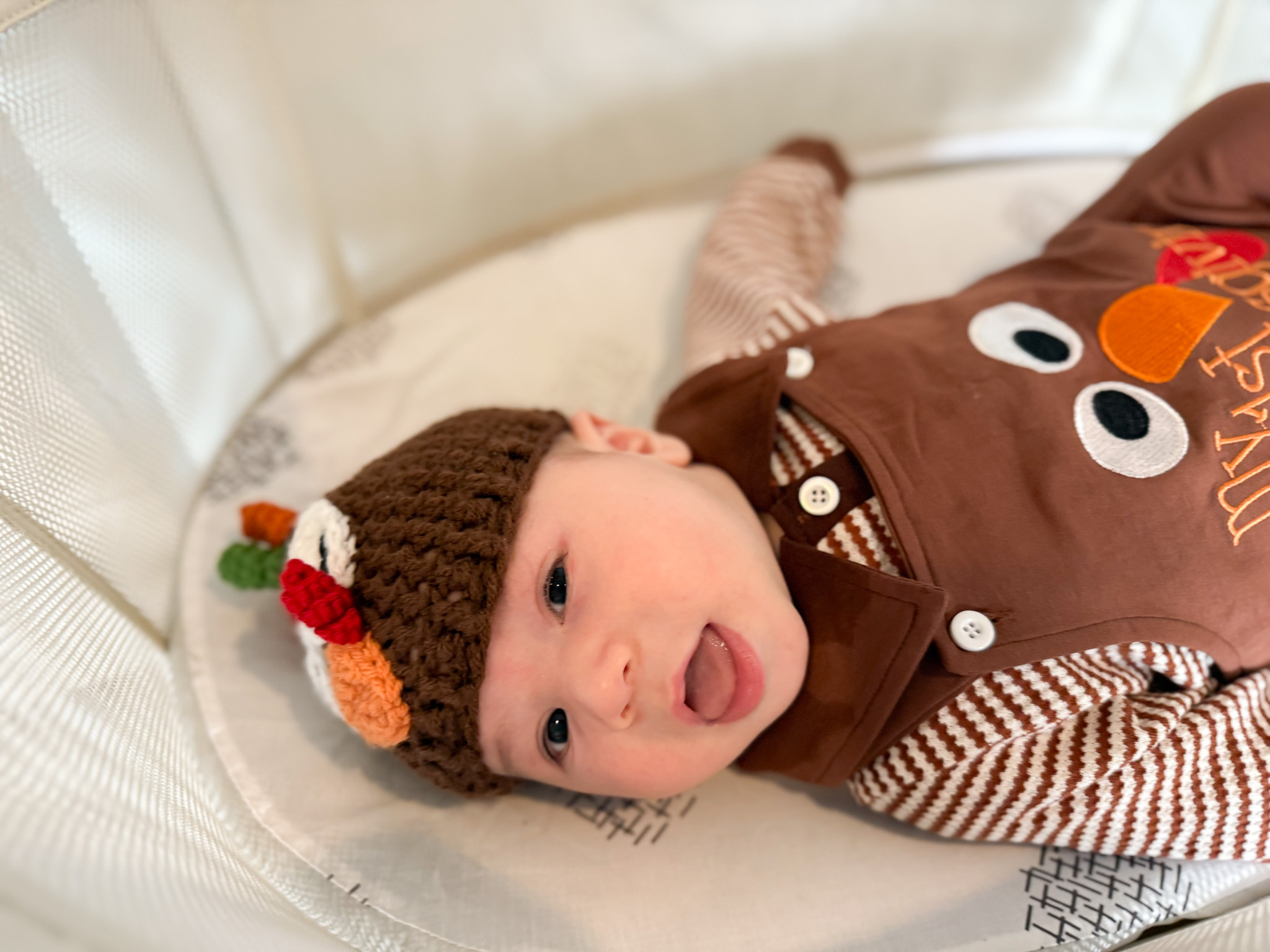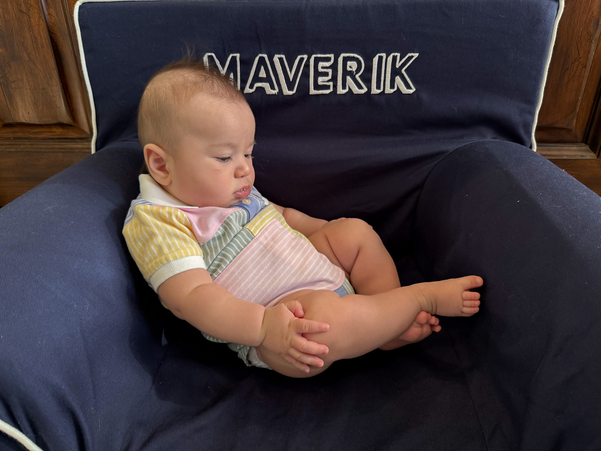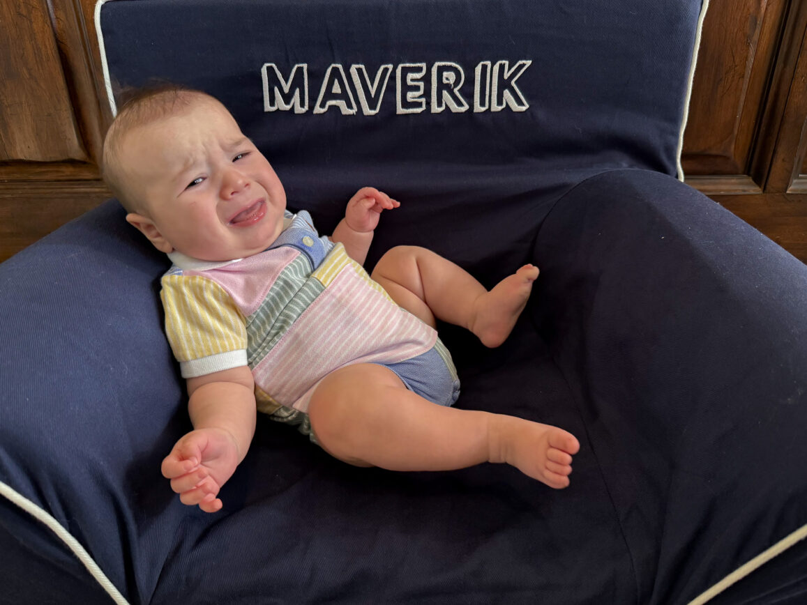 We had Maverik’s 4-month appointment, and he now weighs 15 lb 7.3 oz (47th percentile) and is 25 inches long (37th percentile). He is now double his birth weight, and those handmade rolls are so squishy and cute. I use his chunky rolls as emotional support and give them a good squish whenever I need it. He is smiley and super active—he cannot stay still! He constantly moves his arms and legs and wants to stand on his feet and tap dance all the time. The doctor said he’s hitting all the milestones he’s supposed to, which was great to hear. He received four vaccinations this visit—one oral and three shots in his legs. My poor baby screamed and cried, but he calmed down after chugging an entire 8-oz bottle of milk.