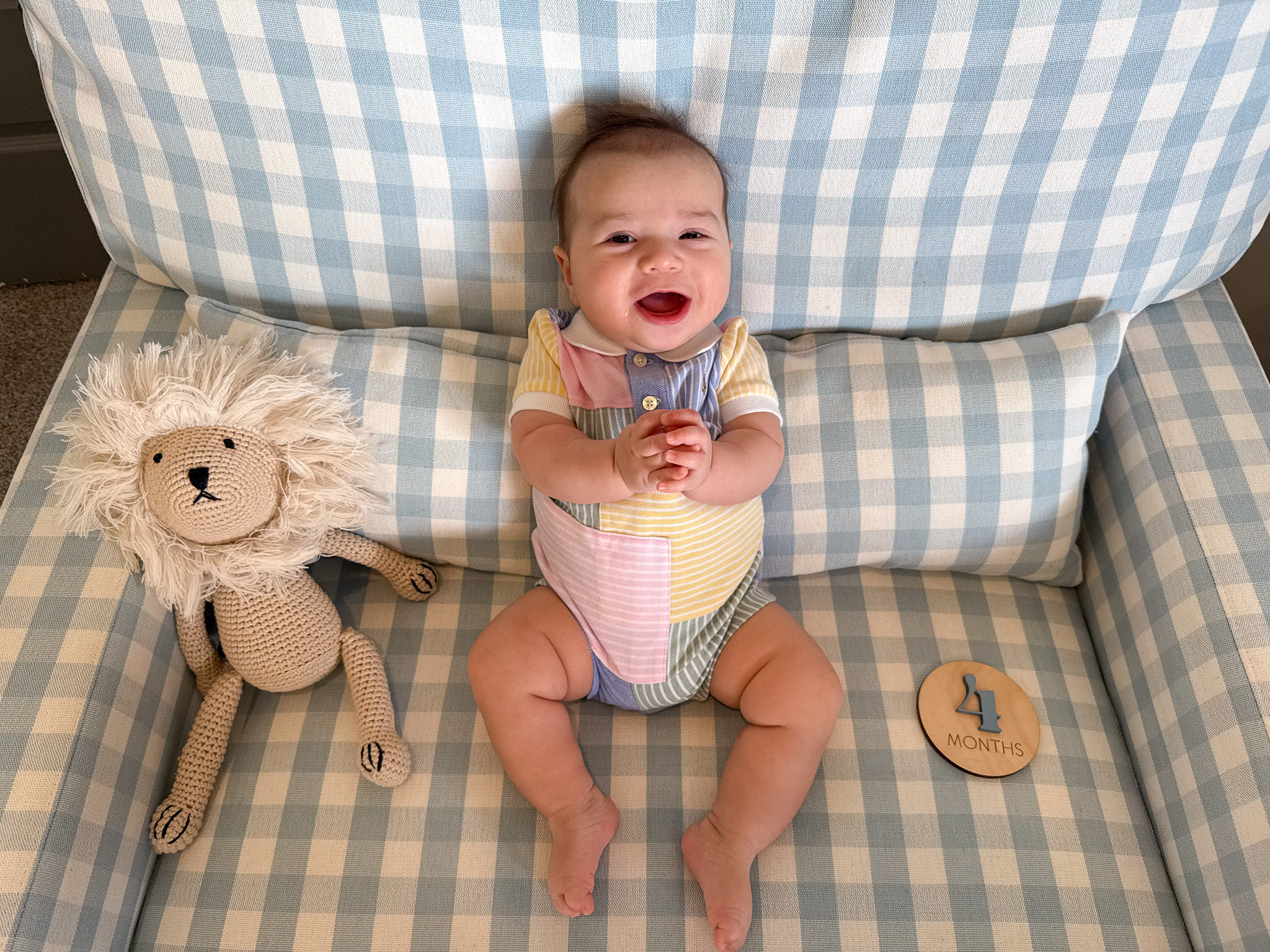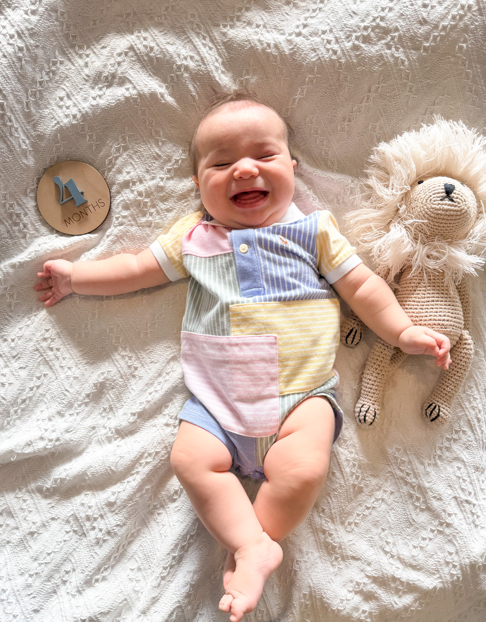 Maverik is 4 months old today, which means he’s already one-third of the way through his first year! He’s getting chunkier and heavier, and my arms are definitely getting a serious workout. With the colder weather outside, it also means more cuddles inside. Since going back to work, the time I can fully focus on him is limited, but I’m enjoying every second I get. My favorite moments are our morning snuggles in bed before I log on for work. Truly the best quality time!