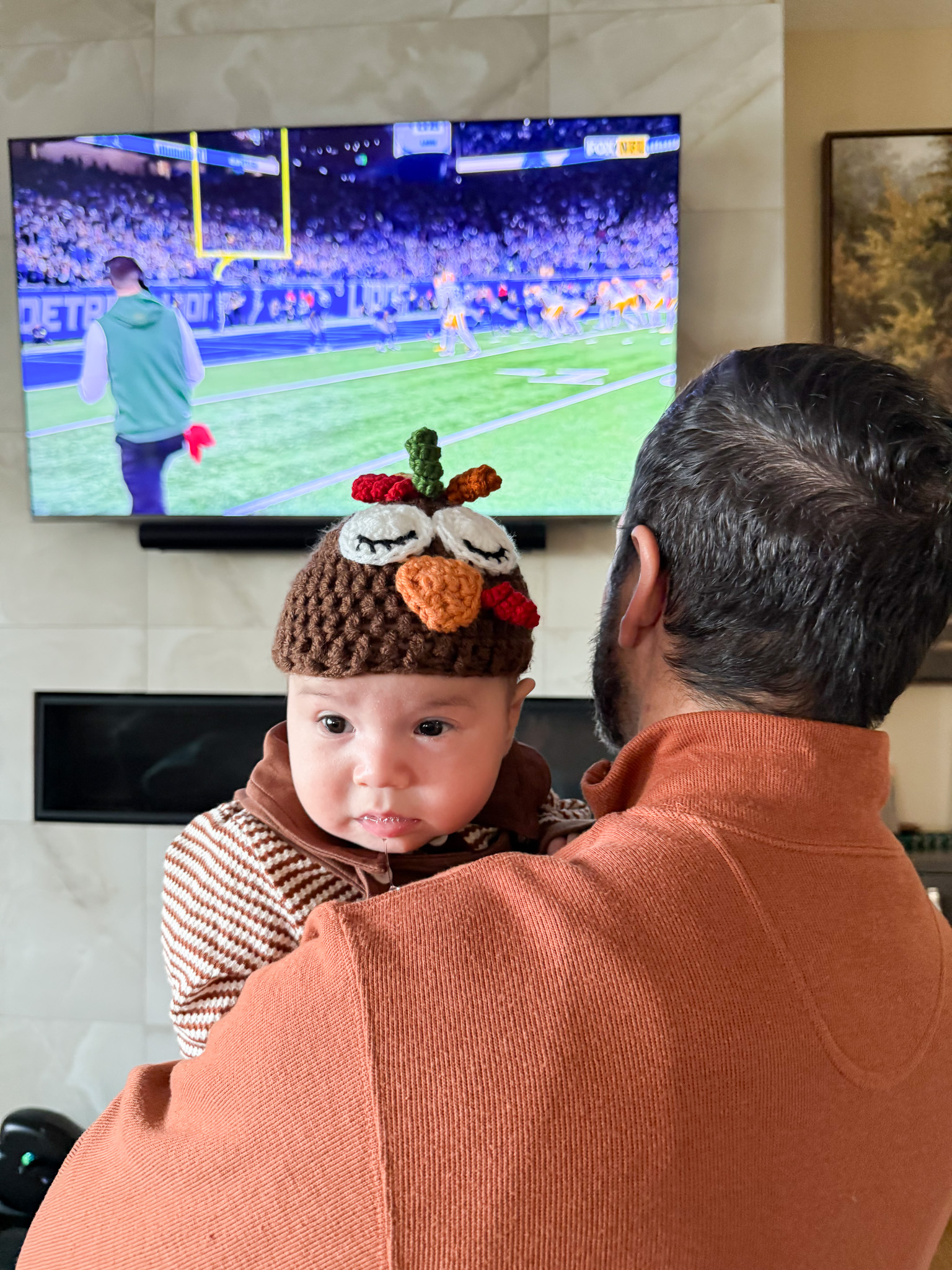 We are now officially in the cold and festive season! Maverik had his first Thanksgiving, where he was passed around to family members, keeping everyone warm and entertained. He also met Santa for the first time. We went to downtown Boise to see the beautifully decorated fundraiser trees, where Santa and Mrs. Claus were there. Since I was holding him, he did just fine meeting them. It was such a sweet moment to capture a big milestone like meeting Santa, and it’s a memory I’ll always cherish for him.