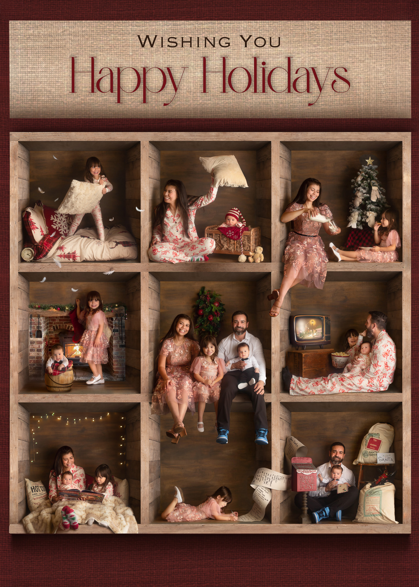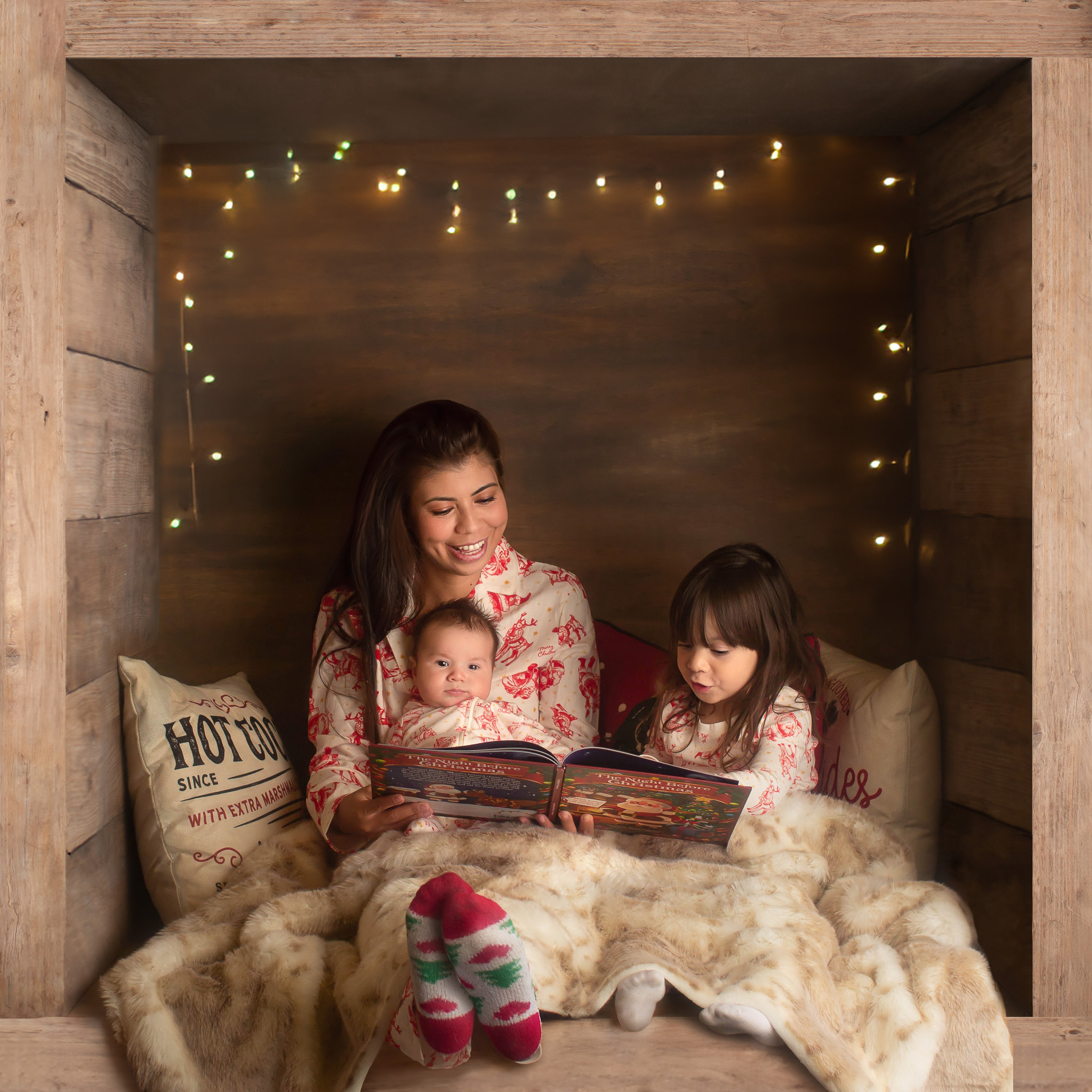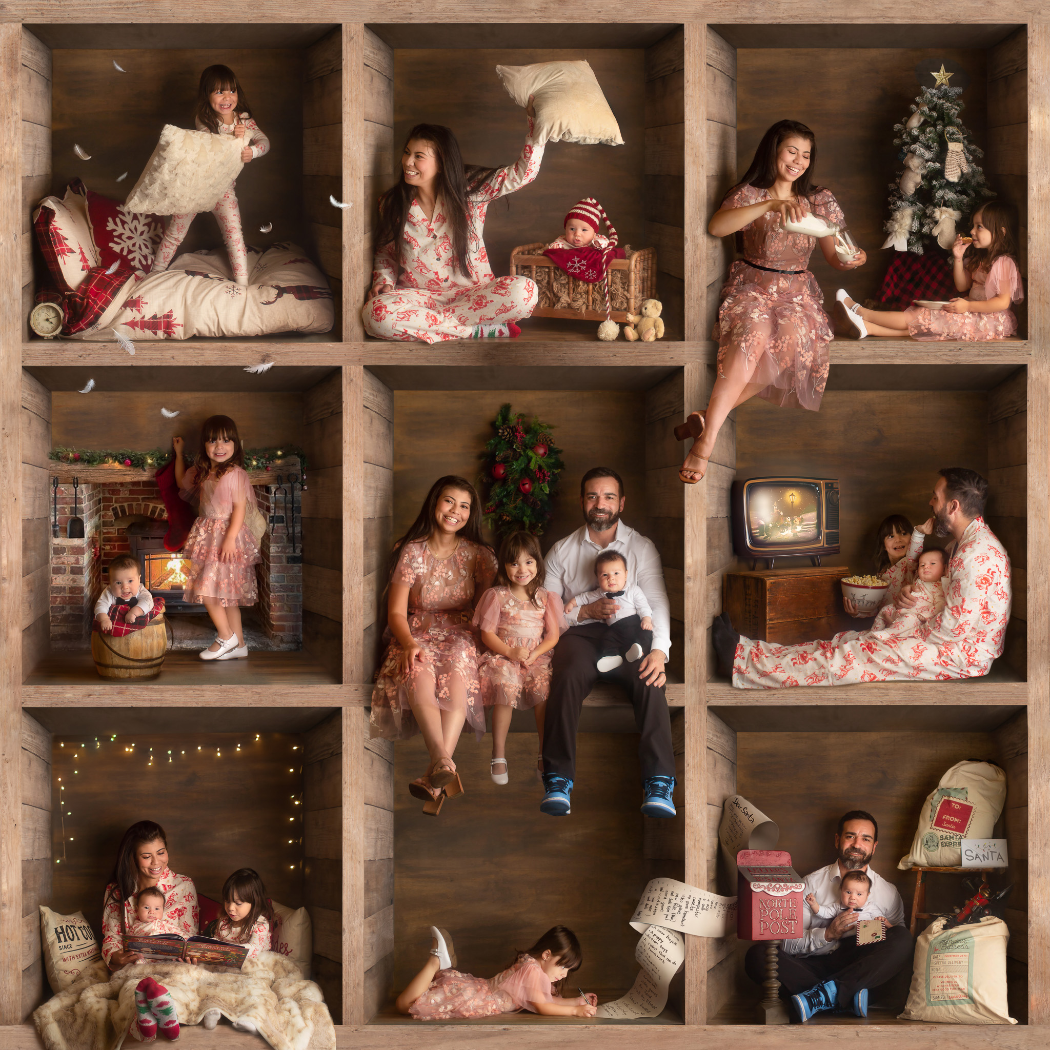 I can’t believe it’s already time to post our yearly Box Photography photos! This year, we took them in mid-October, and since we had already moved to Idaho, it turned into a whole production with two kids. Luckily, we were already in California for my sister-in-law’s wedding, so we found a small window of time to get it done. I’m so proud that we managed to pull it off. This year’s theme was “’Twas the Night Before Christmas,” which included classic activities like writing a letter to Santa, reading a Christmas bedtime story, leaving milk and cookies for Santa, watching a Christmas movie, and even a pillow fight! I’m happy to report that neither of our kids had a meltdown, and I’m very happy about that lol.