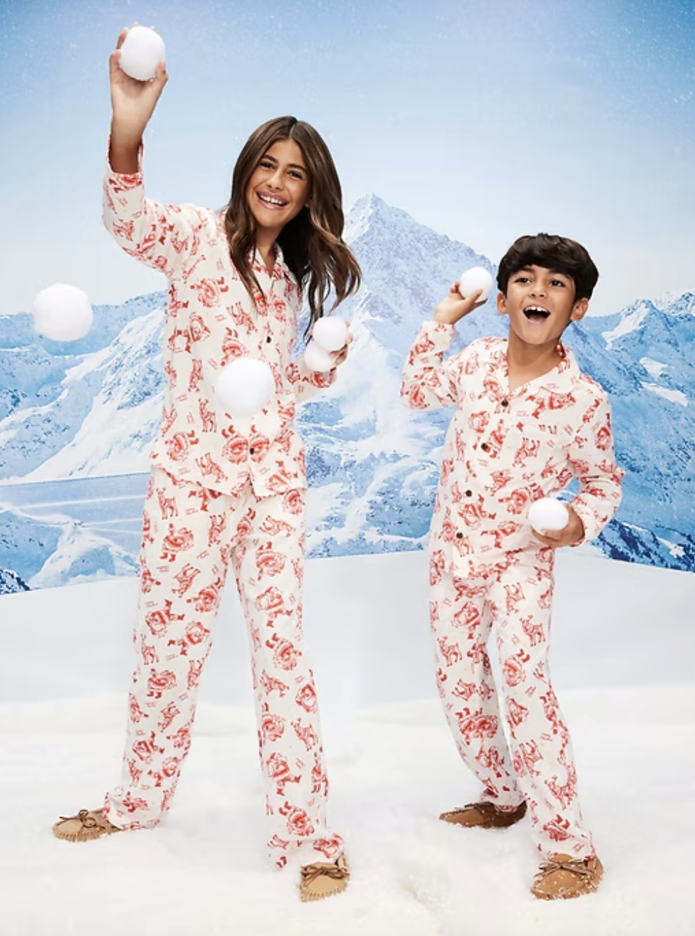 Outfit detail: Pink matching dresses from Self-Portrait (old one), White toddler girl shoes from JCPenney (exact here), Baby boy suits from Amazon (exact here), Printed flannel matching family pajamas by Old Navy (exact linked- for men, for women, for toddler, & for baby – sold out).